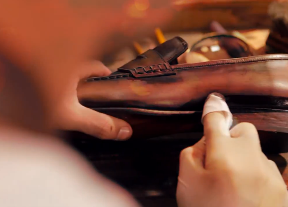Our artisans hand-apply patina using ancient brush techniques — building up layers of depth and character. Each shoe develops a rich, one-of-a-kind finish that evolves beautifully with time.