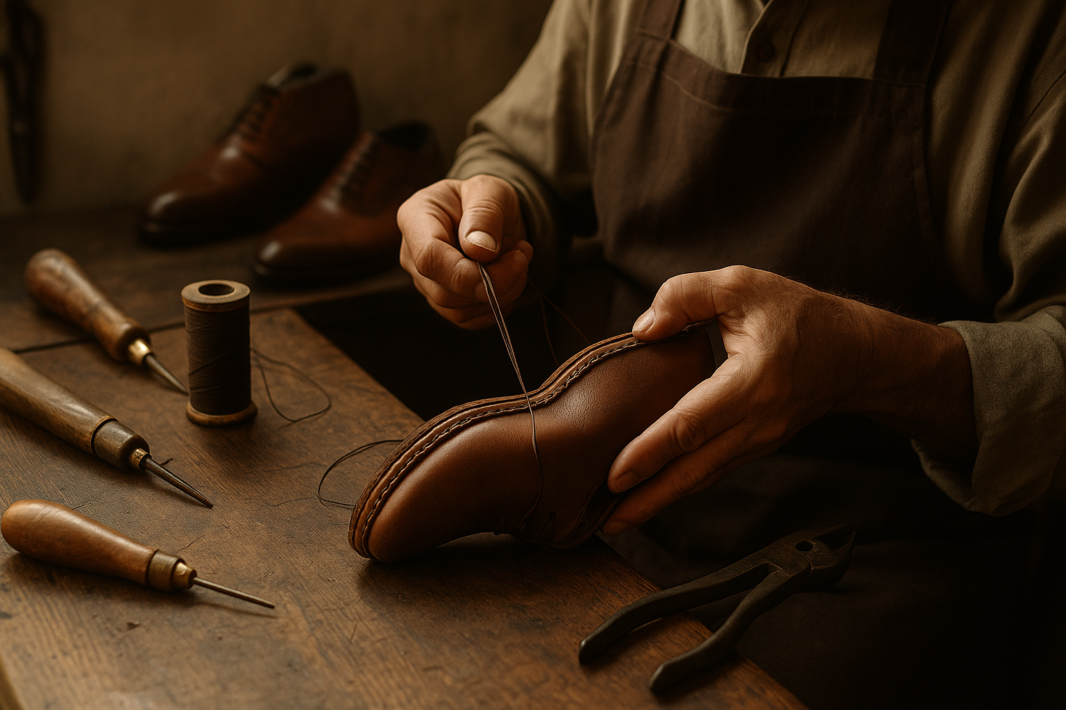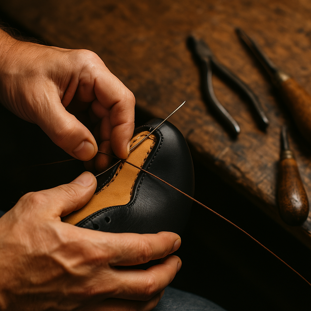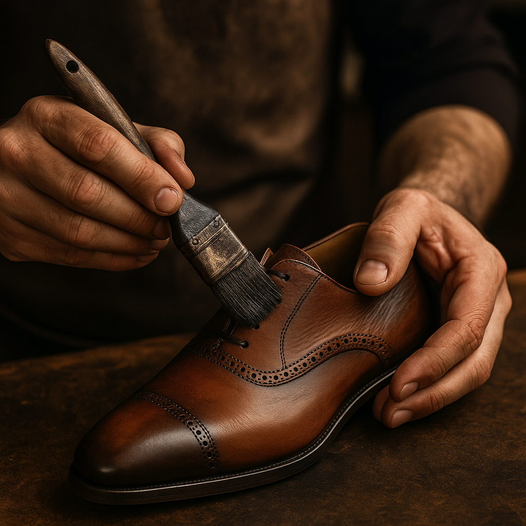 Our artisans hand-apply patina using ancient brush techniques — building up layers of depth and character. Each shoe develops a rich, one-of-a-kind finish that evolves beautifully with time.